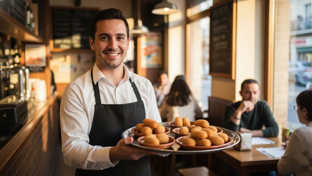 Servir croquetas en número impar no es un descuido: es una jugada maestra. Si sois dos y llegan siete, ya hay lío. Si sois tres y llegan cinco, también. Y si sois cuatro y llegan nueve… pues ya estáis discutiendo quién se queda la última mientras el camarero os mira desde la barra con media sonrisa, sabiendo que al final vais a pedir otra.
