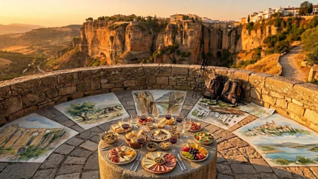 El protagonista indiscutible es el Puente Nuevo, que se alza majestuoso sobre el Tajo de Ronda, una impresionante garganta de más de cien metros de profundidad que divide la ciudad en dos. Desde los miradores se entiende por qué este lugar ha fascinado a viajeros y escritores durante siglos.