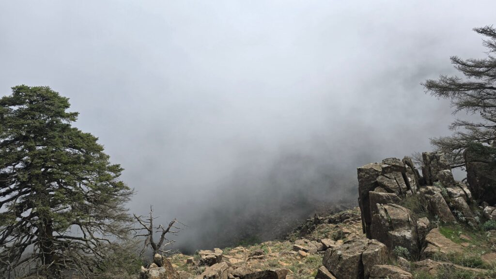 Sobre las once pusimos rumbo a Sierra Bermeja, con la idea de comer en otra venta llamada también El Refugio, situada a unos 1.200 metros de altitud. Más curvas, menos guardarraíles y unas vistas que quitaban el hipo (y casi el volante). Pero al llegar, sorpresa: no había luz y sin reserva, nada de comer. Entre el fresco que hacía y la niebla que bajaba entre los pinos, el paisaje era de película, aunque el estómago pronto iba ya a pedir su papel protagonista y ahí solo había el paisaje de primero, la niebla de segundo y el hambre de postre.