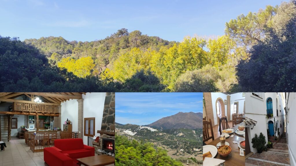 La ruta desde casa se hizo larga por las ganas de llegar, pero de las que merecen la pena. Antes de llegar, hicimos parada en Gaucín para estirar las piernas y comernos un bocadillo, de los que saben a gloria cuando llevas kilómetros de carretera y son las 2 de la tarde. Ese bocata no alimentó, resucitó. Luego seguimos subiendo hacia el valle, entre montes y paisajes que parecían sacados de un cuadro.